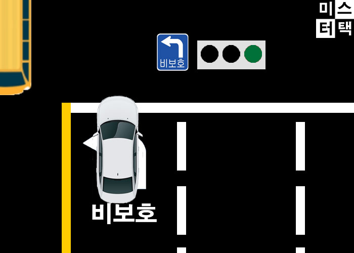 가끔 비보호 좌회전 구간임에도 신호등에서 좌회전 신호가 점등될 때가 있습니다. 좌회전 신호가 점등되었을 때는 일반 좌회전과 동일하게 좌회전하면 됩니다.
