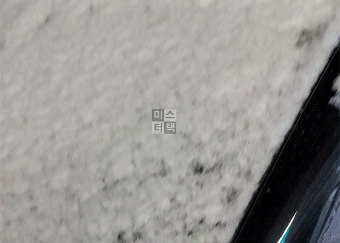 바로 쉽게 구할 수 있는 소주를 뿌리는 것인데요. 소주를 스프레이에 담아서 뿌리는 것이 좋지만 바쁜 상황이었기 때문에 그냥 뿌려줬습니다. 소주로 앞유리에 얼어붙은 눈이 바로 녹는 거 보이시나요?
